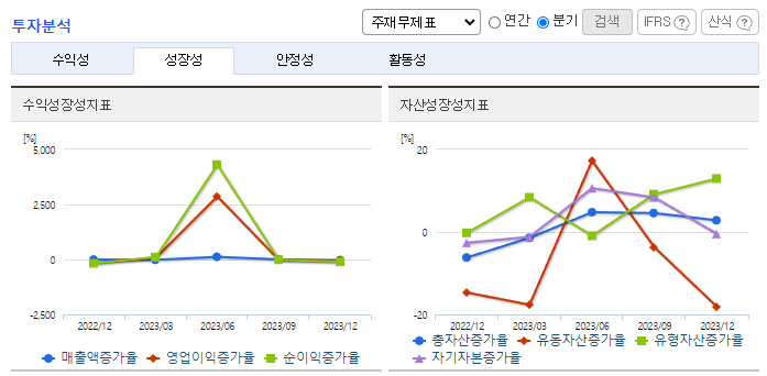-2023년 12월 전년동기 대비 별도기준 매출액은 65.7% 증가, 영업이익은 2618.3% 증가, 당기순이익은 430.1% 증가. 매출처의 제품매출 및 로열티수익이 크게 상승하였고, 매출원가 및 판관비 비용의 감소로 매출액과 영업이익 성장을 이루어냄. 2024년에는 인천광역시 남동공단에 본사 및 신공장 완공이 예정되어 있어, 생산 캐파가 확대되어 향후 추가적인 매출 상승을 견인할 수 있을 것으로 예상됨.