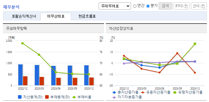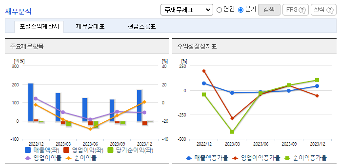 -2023년 12월 전년동기 대비 연결기준 매출액은 0.6% 증가, 영업이익 적자전환, 당기순손실은 597.9% 증가. 동사는 매출이 소폭 증가했으나, 매출원가가 큰 폭으로 증가했고, 판관비까지 동시에 오르면서 영업이익은 적자로 전환함. 동사는 현재 경영권 분쟁을 겪고 있음. 2대 주주인 이학영 헌터하우스 대표이사가 지분을 확대하며 영향력을 행사하려 하고 있고, 이에 따라 법적 소송 리스크가 있음.