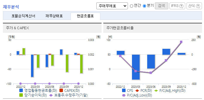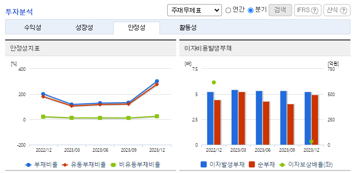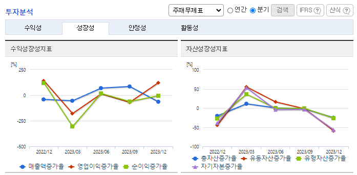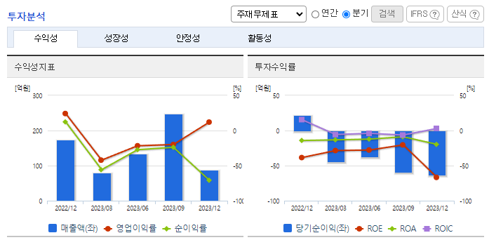 -2023년 12월 전년동기 대비 연결기준 매출액은 35% 감소, 영업손실은 36.1% 감소, 당기순손실은 14.7% 증가. 주력사업인 수배전반류 제품 매출이 크게 부진하며 외형이 축소됨. 매출 감소에도 불구하고 원가율 하락과 판관비, 인건비 등 비용 감소로 영업적자폭은 소폭 축소. 전직 대표이사 횡령·배임 혐의 발생으로 상장적격성 실질 심사를 받고 있어 거래 정지된 상태.