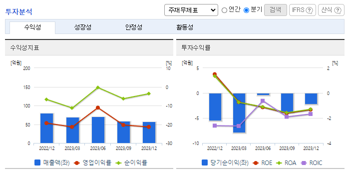 -2023년 12월 전년동기 대비 연결기준 매출액은 51.5% 감소, 영업손실은 676.8% 증가, 당기순이익 적자전환. 매출원가와 판관비가 40.4%, 44.5% 감소했지만 매출 감소폭이 커 영업이익이 대폭 감소함. 동사는 카테고리별 전문화된 자사 브랜드 제품을 구축하고, B2C 유통채널을 확대하고 있으며, 동사만의 원천기술을 확보한 B2B ODM 영업을 통해 유통 채널 편중에서 오는 리스크를 줄여가고 있음.