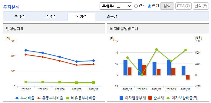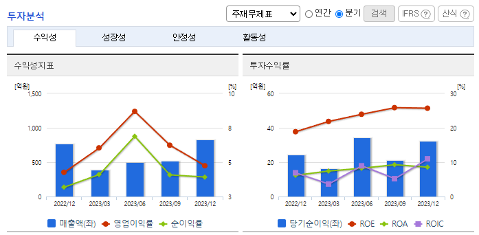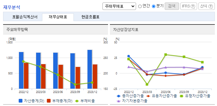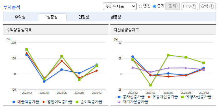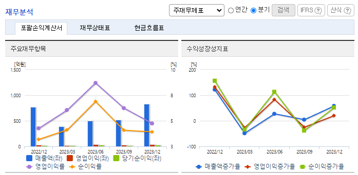 -2023년 12월 전년동기 대비 연결기준 매출액은 31.9% 증가, 영업이익은 63.7% 증가, 당기순이익은 72.3% 증가. IT업계의 사업 호조가 이어지며 사업 수주가 지속적으로 확대되는 모습을 보임에 따라 창사 이래 최초로 매출이 2000억 원을 넘어섬. 네트워크 분야의 우수한 엔지니어 인재 영입, 공채 활용을 통한 신규 채용을 확대하여 경쟁우위를 높여갈 예정임.