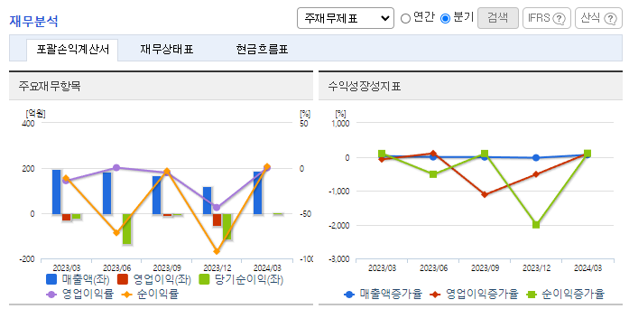 -2023년 12월 전년동기 대비 연결기준 매출액은 15.3% 증가, 영업손실은 21.3% 증가, 당기순손실은 58.1% 감소. 설비투자 확대, 납기·품질성 향상과 함께 인도네시아법인 설립을 통한 미래 비전을 제시하는 등 고객과 관계를 개선해 매출 증가. 매출증가와 생산효율성 증대, 해외법인 구조개편으로 인한 수익성 개선으로 흑자 전환을 목표로 했으나, 2022년 대비 영업손실이 소폭 증가함.