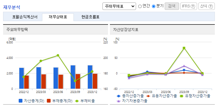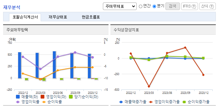 -2023년 12월 전년동기 대비 연결기준 매출액은 15.2% 감소, 영업이익 적자전환, 당기순손실은 65.8% 증가. 최악의 경영여건 하에서 가처분소득의 감소, 자산가격의 하락, 불안심리 등으로 인해 소비자 심리가 얼어붙으면서 섬유사업부 실적이 급감함. 교육사업부문에서도 경기둔화로 인한 국내성장률 저하, 공무원에 대한 선호도 감소, 공무원 인원 감축 기조가 이어지며 어려움을 겪음.