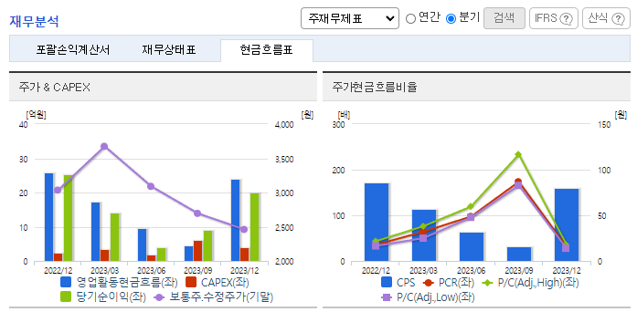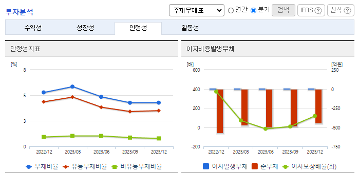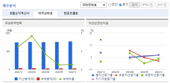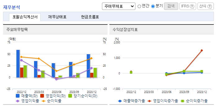 -2023년 12월 전년동기 대비 별도기준 매출액은 17.4% 감소, 영업이익은 62.5% 감소, 당기순이익은 23.5% 감소함. 동사는 다양한 유통 채널과 협력을 바탕으로 성공적인 뷰티 브랜드 제품 출시와 마케팅 지원을 강화하고 있음. 위드 코로나 전환 본격화와 국내 실내 마스크 해제 등 화장품 시장 확대를 대비해 뷰티 기업의 신제품 출시가 증가할 것으로 보여 동사의 매출 성장이 기대됨.