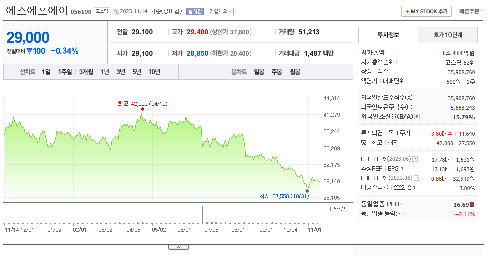 이 글에서는 에스에프에이 주가 전망과 목표 주가, 기업 정보에 대해서 설명합니다. 주식 거래에서 중요한 부분은 현재 기업 가치보다는 미래의 기업 가치를 예측하고 먼저 행동하는 것입니다. 투자할 종목을 고르기 전에 현재 기업의 상황과 지표를 살펴보는 것이 중요합니다. 에스에프에이 주식의 주요 현황과 투자 정보를 확인하시고 주식 투자에 도움이 되는 정보들을 모아 제공하니 투자에 도움을 받으실 수 있을 것입니다.