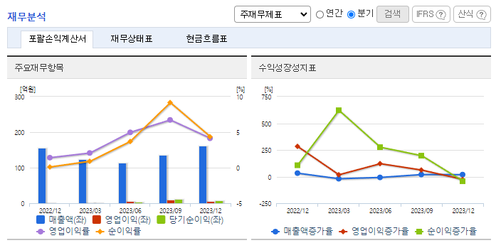 -2023년 12월 전년동기 대비 별도기준 매출액은 1% 감소, 영업이익 흑자전환, 당기순이익은 45% 증가. 주요 원재료는 고철과 분철 등으로 동사는 국내산 고철을 사용하고 있으며, 이를 통한 원가 절감으로 영업이익이 흑자 전환함. 압축분철은 전량 전기로 제강사에 납품되고 있고, 이에 대한 호평으로 추가적 라인증설이나 생산량 증대 방안도 지속 검토하고 있어 향후 분철류 재활용 가공사업은 더욱 발전할 것으로 예상됨.
