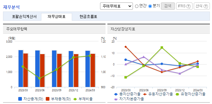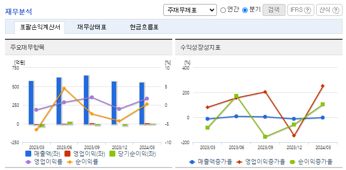 -2023년 12월 전년동기 대비 별도기준 매출액은 4.8% 증가, 영업이익 흑자전환, 당기순손실은 47.6% 감소. 자동차 반도체 생산공급과 코로나19로 인한 위축되었던 소비심리가 회복되며 자동차 판매 증가로 외형 성장. 원가율 개선이 맞물리며 영업이익도 흑자전환. 2015년 이후 처음으로 영업이익이 발생 불구하고 당기순손실 지속하는 중. 부산 기장군의 신소재일반산업단지에 가공공장의 증설 및 설비확충 중