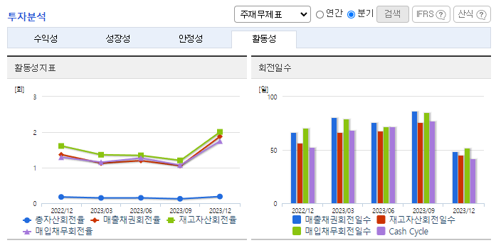 -2023년 12월 전년동기 대비 연결기준 매출액은 13.3% 감소, 영업손실은 16.5% 증가, 당기순손실은 2.3% 증가. 매출이 전년 대비 크게 줄었고, 판매비와 관리비는 전년 대비 소폭 증가했음. 인건비와 복리후생비도 전년 대비 늘며 수익성은 악화했음. 향후 청도 공장은 자동차 전장부품, EMI/EMC Filter, 산업용, 전파흡수체 제품 위주로 제품구조 전환하여 수익성이 개선될 것으로 전망됨.