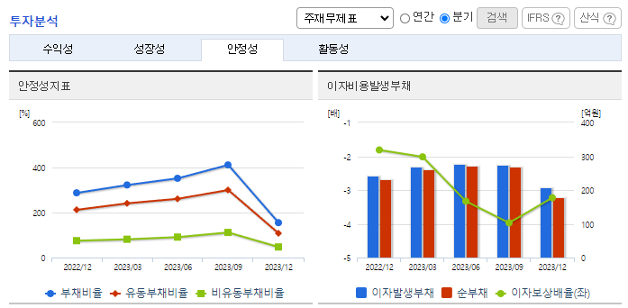 -2023년 12월 전년동기 대비 연결기준 매출액은 13.3% 감소, 영업손실은 16.5% 증가, 당기순손실은 2.3% 증가. 매출이 전년 대비 크게 줄었고, 판매비와 관리비는 전년 대비 소폭 증가했음. 인건비와 복리후생비도 전년 대비 늘며 수익성은 악화했음. 향후 청도 공장은 자동차 전장부품, EMI/EMC Filter, 산업용, 전파흡수체 제품 위주로 제품구조 전환하여 수익성이 개선될 것으로 전망됨.
