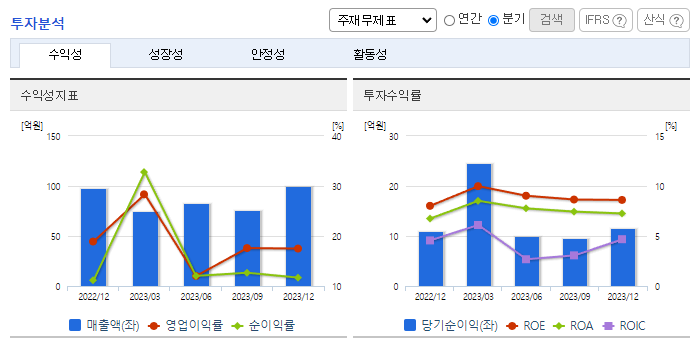 -2023년 12월 전년동기 대비 연결기준 매출액은 4.8% 감소, 영업이익은 1.2% 증가, 당기순이익은 13.8% 증가. 의료정보사업부문은 유지보수료 수입 및 소프트웨어 사용료 수입이 지속적으로 증가하고 있으나, 일부 의료정보 수주프로젝트가 종료돼 매출 감소. IT교육부문 매출액은 전년 대비 18.5% 감소. 비효율적으로 운영되던 일부 교육장을 영업 양도한 결과임.