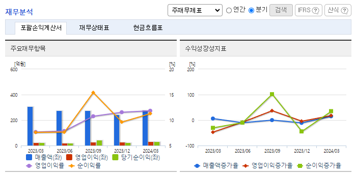 -2023년 12월 전년동기 대비 별도기준 매출액은 0.3% 증가, 영업이익은 53% 감소, 당기순이익은 38.3% 감소. 원재료 가격 상승 등으로 수익성이 저하되었음. 내수에서 대량 거래처는 직접 판매하고 소량 거래처는 대리점을 통해 판매함. 수출은 대리점 판매보다는 직거래 판매에 우선순위를 두고 있음. MPC유도체는 인공 바이오장기 및 성형보형물로의 고분자소재로 연구가 활발히 진행 중.