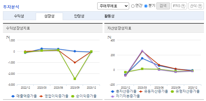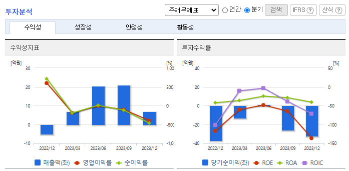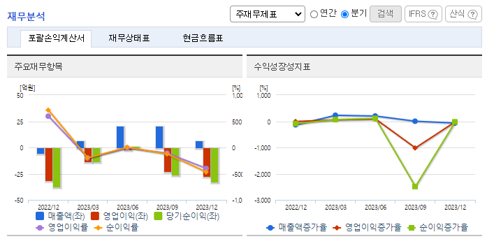 -2023년 12월 전년동기 대비 별도기준 매출액은 30.4% 감소, 영업손실은 32.8% 감소, 당기순손실은 25.7% 감소. 동사 제품의 평균 판매 단가가 하락하였으나 원가절감로 영업손실이 축소됨. 시장에 능동적으로 대처하기 위해 네트워크 중심의 시장 전략제품을 신속하게 개발함은 물론 향후 씨큐리티 시장의 디지털 컨버전스를 선도할 수 있는 최첨단 기술을 확보하기 위하여 끊임없이 투자하고 있음.