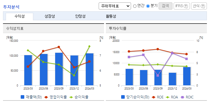 -2023년 12월 전년동기 대비 연결기준 매출액은 2.9% 감소, 영업이익은 13.5% 증가, 당기순이익은 8.5% 증가. 23년은 글로벌 경기 둔화 우려 속에서도 각 사업별 레벨업 된 경쟁력 바탕으로 견고한 실적 달성. 24년에는 다각화된 포트폴리오 기반으로 안정적 사업운영을 지속하여 전년 수준 매출을 유지하고, 각 사업별 경쟁력을 바탕으로 수익성을 강화해 나갈 계획
