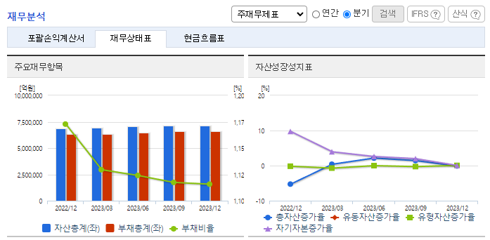 -그룹 총자산은 우량 기업대출 중심 원화대출금 성장을 통해 전년대비 27조 730억 원 증가한 715조 7380억 원을 달성함. 자산성장 및 NIM 개선으로 이자이익이 증가하였고, 효율적인 시장변화 대응으로 자본시장손익 개선되면서 보수적인 충당금 적립에도 불구하고 당기순이익은 전년 대비 11.5% 증가함. 경기둔화 및 고금리 장기화에 따라 연결기준 고정이하여신비율은 1.01%로 전년 대비 0.31% p 상승함.