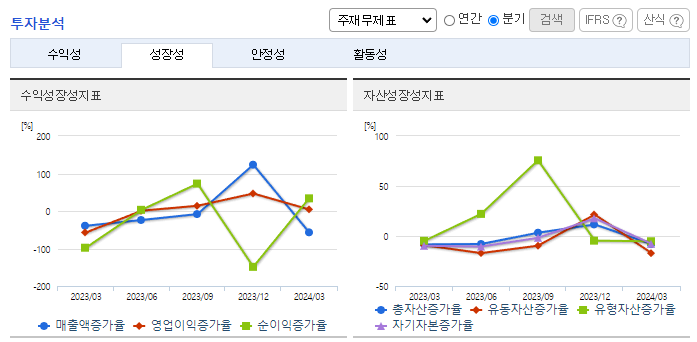 -2023년 12월 전년동기 대비 연결기준 매출액은 41% 감소, 영업손실은 12.4% 증가, 당기순손실은 18.7% 감소. 매출액 감소와 영업손실 증가에는 당사가 영위하고 있는 신규사업 중 BIO IT 사업과 건강기능식품 사업의 부진으로 인한 매출액 감소가 주된 요인으로 작용함. 허혈성질환치료제의 4개의 파이프라인(당뇨망막증치료제, 욕창치료제, 창상치료제, 심근허혈 및 재관류 손상 치료제)을 보유하고 있음.
