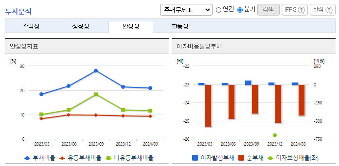 -2023년 12월 전년동기 대비 연결기준 매출액은 41% 감소, 영업손실은 12.4% 증가, 당기순손실은 18.7% 감소. 매출액 감소와 영업손실 증가에는 당사가 영위하고 있는 신규사업 중 BIO IT 사업과 건강기능식품 사업의 부진으로 인한 매출액 감소가 주된 요인으로 작용함. 허혈성질환치료제의 4개의 파이프라인(당뇨망막증치료제, 욕창치료제, 창상치료제, 심근허혈 및 재관류 손상 치료제)을 보유하고 있음.