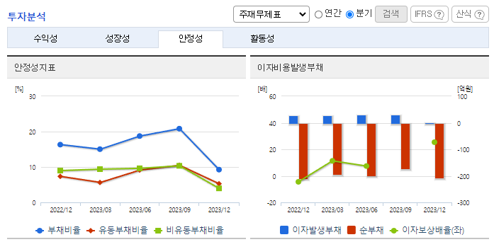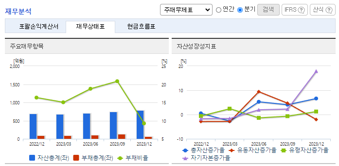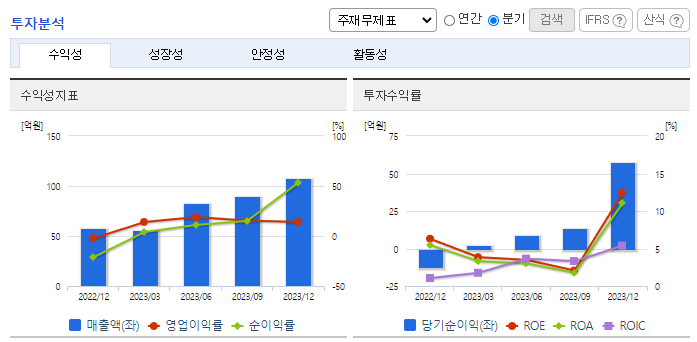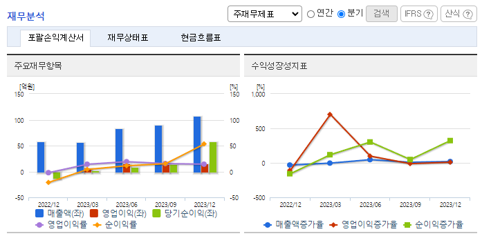 -2023년 12월 전년동기 대비 연결기준 매출액은 22.4% 증가, 영업이익은 47.2% 증가, 당기순이익은 125.7% 증가. 개인용 미용기기 해외 시장 매출 증가와 카트리지 등 소모품 매출 비중 확대에 따른 매출 원가율 개선 등의 영향으로 영업이익 개선함. 전환사채 평가 손실 감소했고 예금 금리 상승에 따른 이자 수익이 늘면서 당기순이익 역시 전년 대비 큰 폭으로 늘었음.