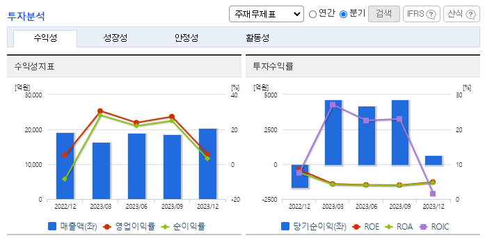 -종속회사인 LG CNS의 매출이 늘었으나, LG전자, LG화학 등의 이익 감소로 인해 지분법손익이 4,037억 원 줄어듦에 따라 영업이익은 전년 대비 18.2% 감소함. LG이노텍과 LG전자의 이익 감소, LG디스플레이 영업적자 확대로 인해 전자계열의 이익률이 지난해 같은 기간보다 크게 낮아짐. 화학계열은 LG에너지솔루션의 북미시장 판매확대로 매출이 늘었음에도 석유화학제품의 수요부진 및 경쟁사 저가공세 지속으로 영업이익률이 하락함.