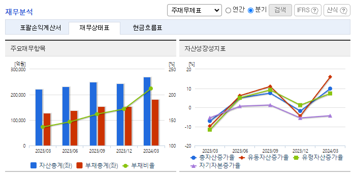 -2023년 12월 전년동기 대비 연결기준 매출액은 1.2% 증가, 영업이익은 34.6% 감소, 당기순이익 적자전환. 큐셀 부문은 미국과 유럽을 중심으로 개발 자산 매각 및 EPC 매출이 1조 원 이상 늘어나면서 역대 최대 실적 경신함. 케미칼 부문은 전 세계적으로 석유화학 수급 불균형이 장기간 지속되면서 주력 제품의 마진이 축소됐고, 4분기 정기보수 등이 수익성에 영향을 미쳤음.