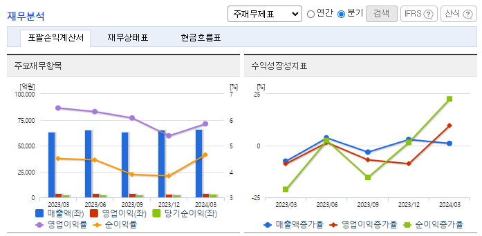 -2023년 12월 전년동기 대비 연결기준 매출액은 4.8% 감소, 영업이익은 13.6% 감소, 당기순이익은 10.8% 감소. 현대차그룹의 자동차 출하량 상승의 일시적인 효과가 감소하면서 물류부문의 비중이 감소하였음. 이에 매출이 전년대비 감소하고 영업이익도 감소하였음. 전기차 수요 증가에 따른 북미 현지 생산 확대 및 동남아 신규 생산공장 가동으로 CKD사업의 시장전망은 양호한 상태임.