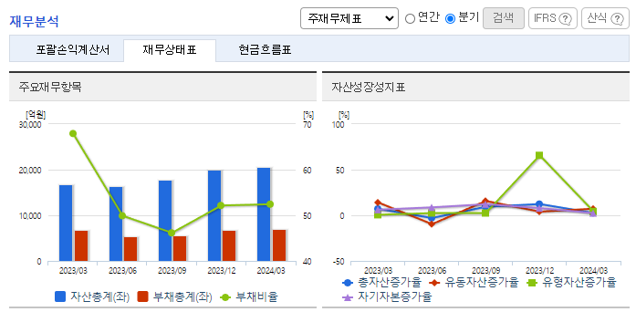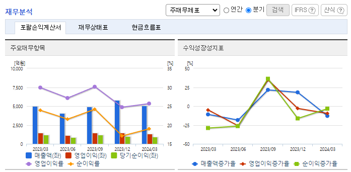 -2023년 12월 전년동기 대비 연결기준 매출액은 9.4% 증가, 영업이익은 5.1% 증가, 당기순이익은 3.8% 감소. 해외 시장인 중국, 홍콩, 마카오, 대만, 동남아에서 글로벌 성장을 가속되고 있으며, 특히 홍콩법인 매출액은 전기대비 53% 증가함. 신규 설립한 에프앤에프엔터테인먼트는 연예인 매니지먼트업 등의 사업을 전개하며 2023년 처음으로 매출액이 발생하였음.