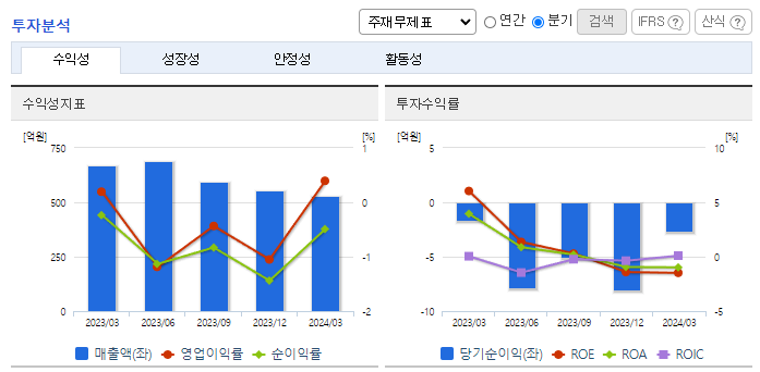 -2023년 12월 전년동기 대비 별도기준 매출액은 2.6% 감소, 영업이익 적자전환, 당기순이익 적자전환. 글로벌 경기 부진과 금리인상의 영향이 본격화 돼 국내 소비, 투자 등의 둔화로 경기가 위축되면서 영업활동에 어려움을 겪으며 실적 저하됨. 동사는 특수금속 소재인 티타늄, 니켈합금 사업에도 진출하여 석유화학, LNG, 담수화설비 등에 산업용 소재를 공급하고 있음.