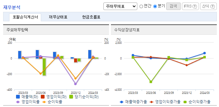 -2023년 12월 전년동기 대비 별도기준 매출액은 13.8% 감소, 영업이익 적자전환, 당기순손실은 25.1% 증가. 러우전쟁, 이스라엘 하마스 전쟁 등으로 거시경제 리스크가 확대되었고, 이에 따라 경기둔화 및 원자재 가격불안정에 따라 매출감소와 영업손실 발생 ODM 제품 제작 방식을 통해 재고문제를 해결해 가려 노력 중이고 유튜브 등을 통한 온라인 마케팅을 지속적으로 선보이며 신규거래처 발굴을 지속해가고 있음.