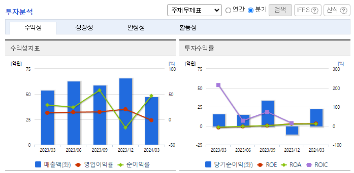 -2023년 12월 전년동기 대비 연결기준 매출액은 2.7% 증가, 영업이익은 21.7% 감소, 당기순이익은 43.3% 증가. 전년동기 대비 매출은 정체된 가운데 매출 원가 증가 폭이 매출 증가 폭을 상회했고, 판관비와 인건비도 전체적으로 크게 늘면서 영업이익은 하락했음. 동사는 그동안 쌓아온 기술적 노하우와 함께 새로운 기술에 대한 과감한 투자를 통해 끊임없이 발전하는 데 전사적 노력을 기울임.