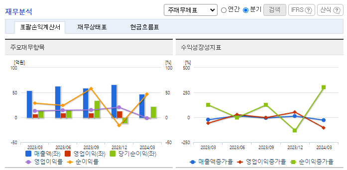 -2023년 12월 전년동기 대비 연결기준 매출액은 2.7% 증가, 영업이익은 21.7% 감소, 당기순이익은 43.3% 증가. 전년동기 대비 매출은 정체된 가운데 매출 원가 증가 폭이 매출 증가 폭을 상회했고, 판관비와 인건비도 전체적으로 크게 늘면서 영업이익은 하락했음. 동사는 그동안 쌓아온 기술적 노하우와 함께 새로운 기술에 대한 과감한 투자를 통해 끊임없이 발전하는 데 전사적 노력을 기울임.
