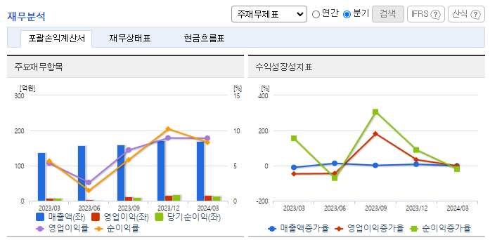 -2023년 12월 전년동기 대비 연결기준 매출액은 2.1% 증가, 영업이익은 33.9% 감소, 당기순이익은 6.3% 감소. 전자소재 및 전자재료 부문은 서산 신규 공장을 정상화하여 개발과 생산성을 높여 시장장악력을 높이려 노력할 예정임. 신소재는 20여년간 축적된 가열박리, UV박리, 냉각박리 등의 자동박리테이프 설계기술과 코팅기술을 주요 전자부품 제조 공정에 확대해 나갈 예정임.