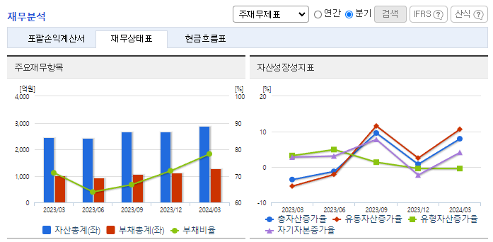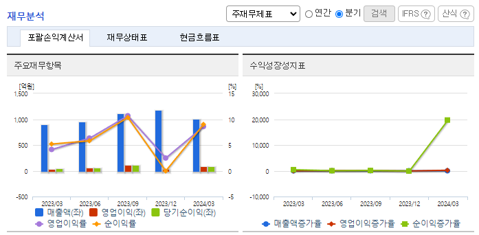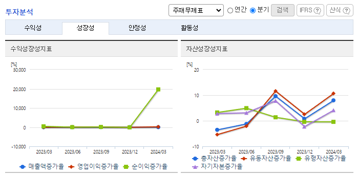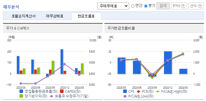 -2024년 3월 전년동기 대비 연결기준 매출액은 12.6% 증가, 영업이익은 133.9% 증가, 당기순이익은 95.2% 증가. 23년 기준으로 배당 수익률이 5.9%이므로 최근에 이슈화된 Value-up 지표 관련 투자 종목으로 주목받고 있음. 국가 중요시설 보안 및 특수경비를 담당하는 전담법인 에스텍프라임을 설립하여 사업다각화를 도모함. 과거 에스원의 노하우를 살릴 것으로 기대.