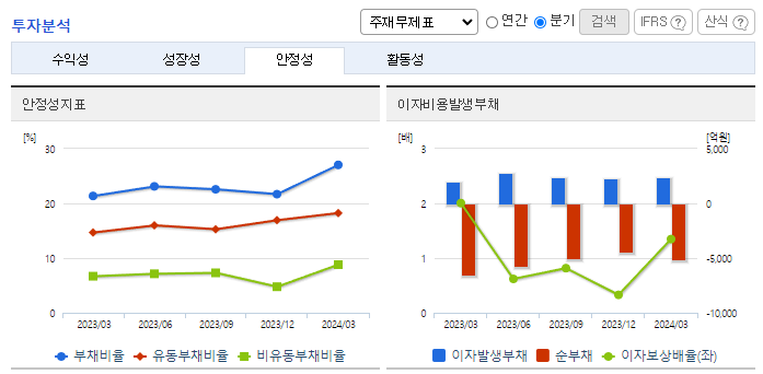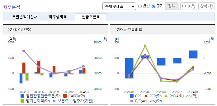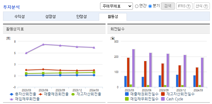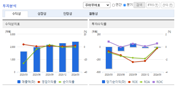 -2023년 12월 전년동기 대비 연결기준 매출액은 10.9% 증가, 영업이익은 86.1% 감소, 당기순이익 적자전환. 전지박 매출이 증가하면서, 매출이 10%가 까이 증가했지만, 재고자산 증가에 따른 원가율 상승으로 영업이익이 80% 가까이 감소함. 이차전지 시장이 요구하는 차세대 배터리 소재 개발(고체전해질, LFP 양극활물질, 실리콘 음극활물질)로 미래 가치를 높이는 R&D 역량을 강화하는데 집중하고 있음.