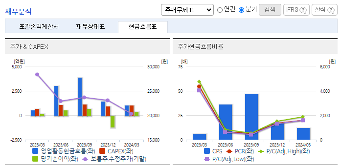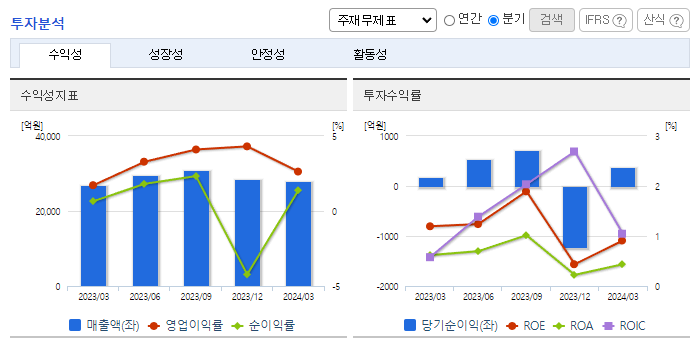 -2024년 3월 전년동기 대비 연결기준 매출액은 5.1% 증가, 영업이익은 16.6% 증가, 당기순이익은 114.6% 증가. 동사의 전 사업부 모두 증익에 성공하였음. 편의점은 매출 5.4%, 영업이익 15.9% YoY, 슈퍼는 매출과 영업이익 각각 11.6%, 130.2%YoY 증가하였음. 편의점 사업부의 인건비 절감 효과와 함께 수퍼 사업부의 증익, 공통 및 기타 사업부의 적자 축소 기조는 지속되고 있음.