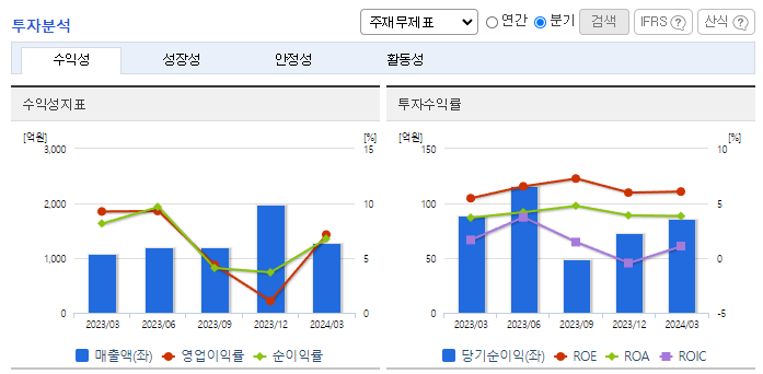 -2024년 1분기 전년동기 대비 연결기준 매출액은 17.7% 증가, 영업이익은 9.2% 감소, 당기순이익은 2.3% 감소. 신한울 3,4호기 매출인식 본격화로 원자력 및 원자로분야 매출이 크게 상승하였으나, 해외 EPC사업 등의 원가율 증가 및 고정비 등 경비증가로 영업이익은 소폭 감소함. 에너지 안보 강화와 탄소중립 이행을 위해 원전 신규건설 시장은 확대될 전망이며 동사 또한 체코, 폴란드 등 해외시장 진출 확대를 추진 중임.