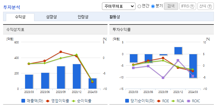 -2024년 3월 전년동기 대비 연결기준 매출액은 27.2% 감소, 영업손실은 189% 증가, 당기순손실은 189% 증가. 반도체 부문의 수주 감소에 따른 시스템 통합 매출 감소함. SK하이닉스 등 국내 반도체 및 철강 기업을 대상으로 안정적인 고객사 및 지속적인 수주 확보 중임. 특히, 2024년 2월 삼성엔지니어링과 산업자동화솔루션 2년 프레임 어그리먼트 체결함.