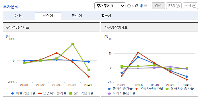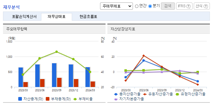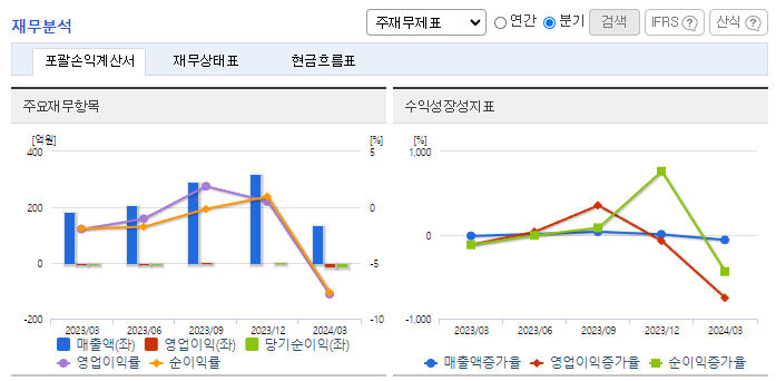 -2024년 3월 전년동기 대비 연결기준 매출액은 27.2% 감소, 영업손실은 189% 증가, 당기순손실은 189% 증가. 반도체 부문의 수주 감소에 따른 시스템 통합 매출 감소함. SK하이닉스 등 국내 반도체 및 철강 기업을 대상으로 안정적인 고객사 및 지속적인 수주 확보 중임. 특히, 2024년 2월 삼성엔지니어링과 산업자동화솔루션 2년 프레임 어그리먼트 체결함.
