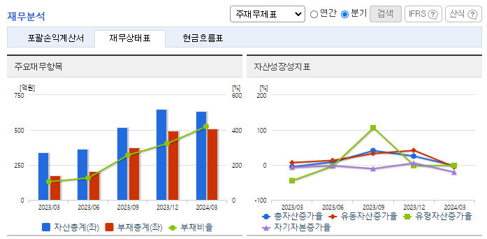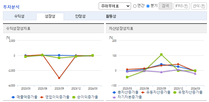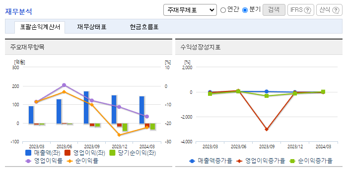 -2024년 3월 전년동기 대비 연결기준 매출액은 58.7% 증가, 영업손실은 205.4% 증가, 당기순손실은 390% 증가. 이차전지 산업 집중 전략 구사 등 본업 안정화가 외형성장에 도움을 주었고, 또한 신규 자회사 티라이트로보의 연결실적에 편입에 따른 외형 확장에 힘입어 호실적을 달성함. 세계적으로 2차 전지 투자가 늘어나면서 동사의 2차전지 스마트 공장에서 실적 개선이 기대됨.