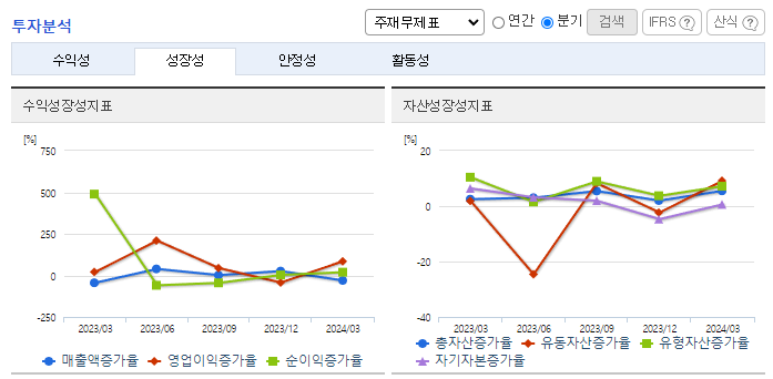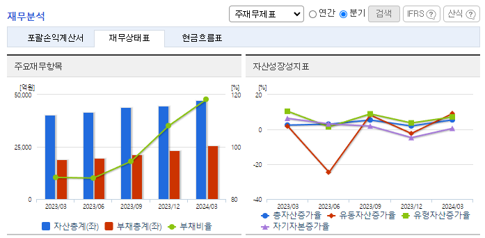 -2024년 3월 전년동기 대비 연결기준 매출액은 23.9% 증가, 영업이익은 218.1% 증가, 당기순이익은 72.2% 감소. 방산 부문 양산 사업과 ICT 부문의 계열사 IT 수요로 매출 증가하여 영업이익이 전년 동기 대비 123% 증가한 716억 달성함. TICN 4차 양산, 30mm 차륜형대공포 양산 사업 등 매출 증가로 인한 영업이익 증가. 콜린스와 'Saturn' 사업 추진을 위한 계약 체결.
