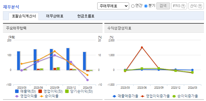 -2024년 1분기 전년동기 대비 연결기준 매출액은 3.5% 감소, 영업손실은 1440% 증가, 당기순이익 적자전환. 현재 10여 개 협력사와의 비즈니스 협력관계를 통해 다양한 업무 편의기능을 제공 중이며, 관련 서비스를 지속적으로 확대해 나갈 예정임. 기업용 모바일 앱뿐만 아니라 일반적으로 불특정 다수가 사용하는 방식의 앱도 개발이 가능하도록 기능을 확장한 '플렉스튜디오 3.0'을 출시해 더욱 다양해진 편의 기능을 제공하고 있음.