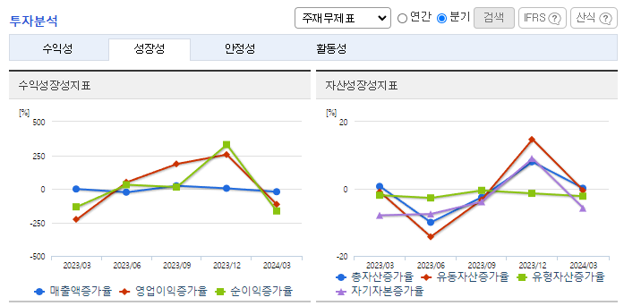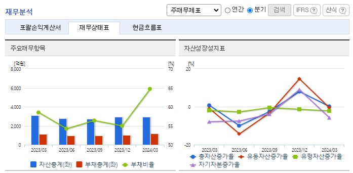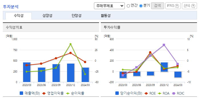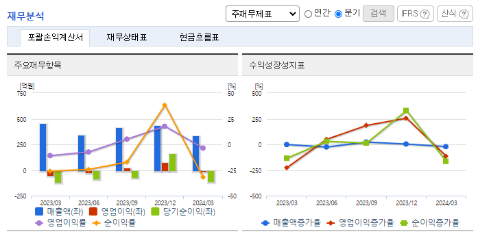 -2024년 3월 전년동기 대비 연결기준 매출액은 25.9% 감소, 영업손실은 75.8% 감소, 당기순손실은 28.2% 감소. 전년동기대비 디스플레이 검사장비 부문에서의 매출이 크게 하락하였음. 이로 인해 영업이익 적자 지속. OLED 디스플레이 장비 시장은 사전 양산 검증받은 업체 위주로 수주가 집중되고 있으며 기술력, 적기 생산능력, 원자재 확보능력, 생산 등의 인프라가 구축된 장비업체가 지속적으로 점유율을 확보할 것으로 전망.
