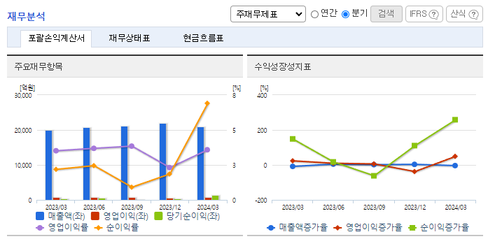 -2023년 12월 전년동기 대비 연결기준 매출액은 11.7% 증가, 영업이익은 12.6% 증가, 당기순이익은 37.9% 증가. Global 공급망 이슈 완화, EV Car를 중심으로 완성차 시장의 Covid-19 이전으로의 회복 등으로, 2023년 연결 기준 매출이 상승했음. 인플레이션에 따른 비용 상승 등으로 영업이익은 매출 상승 대비 다소 낮은 증가세를 보였음,