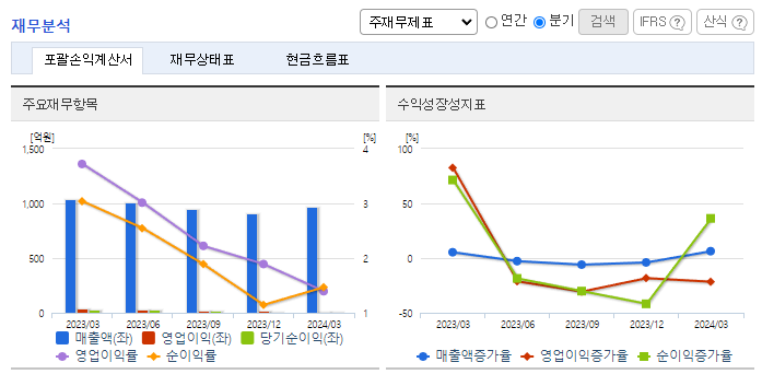 -2023년 12월 전년동기 대비 별도기준 매출액은 6% 감소, 영업이익은 5.9% 감소, 당기순이익은 11.5% 감소. 중국산 저가 철강 공세와 국내 건설 경기 둔화, 글로벌 철광석 가격 인상 등 악재가 겹겹이 쌓이며 수익성이 악화됨. 올해는 최근 중국산 저가 철강재 가격 상승, 국제 철광석 가격 인상 수입 등은 원가 부담으로 작용할 전망. 동사는 불확실한 환경에도 안정적인 판매량과 수익성 확보를 위해 역량을 집중하고 있음.