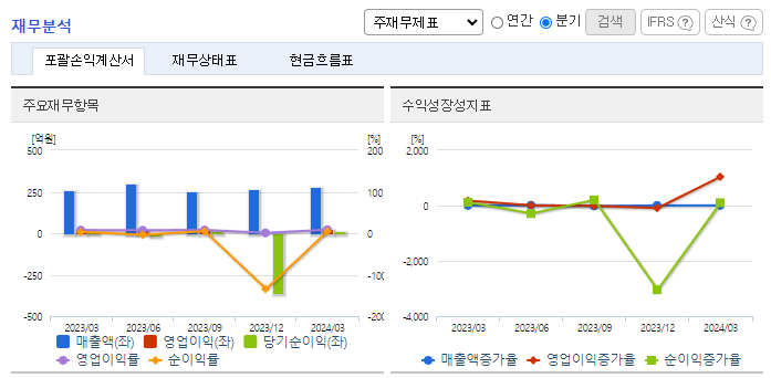 -2024년 3월 전년동기 대비 연결기준 매출액은 6.9% 증가, 영업이익은 18.9% 증가, 당기순이익은 120.2% 증가. 자동차 생산량 증가로 외형 성장의 주요 원인이며, 고정비 동반 성장에도 영업이익 또한 성장세를 유지 중임. 동사는 R&D를 통한 끊임없는 기술개발 및 신제품개발로 시트히터 이외에도 통풍시트, 발열핸들 등의 신제품 상용화를 계획 및 추진 중에 있음.