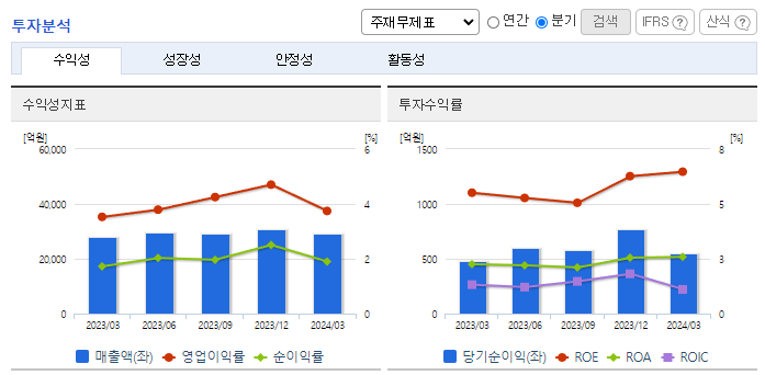 -2023년 12월 전년동기 대비 연결기준 매출액은 3% 감소, 영업이익은 16.6% 증가, 당기순이익은 23.8% 증가. 국내 주요 사업 신규 수주 등 물동량 확대로 매출 증가 하였으나, 글로벌 사업은 포워딩 운임 하락 영향으로 감소. CL 사업은 신규수주 확대와 생산성 개선에 따른 원가 절감 효과로 이익이 증가. 2023년 9월 인천 GDC 오토스토어 도입으로 CAPA 1.5배 확장하여 아시아 권역으로 사업을 확대하고 있음.