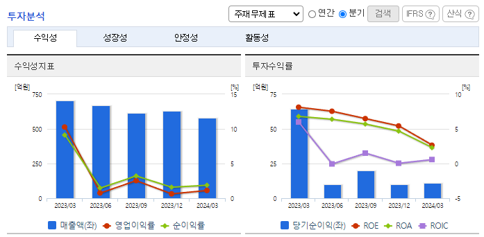 -2024년 3월 전년동기 대비 별도기준 매출액은 18% 감소, 영업이익은 91.1% 감소, 당기순이익은 83.2% 감소. 철구조물 제작, 자동차 내장재 등에 쓰이는 제품의 매출액이 전년동기 대비 감소하고 지급수수료 등 판관비 및 인건비가 증가하면서 영업이익이 크게 감소함. 국내 주요 철강생산업체는 고정적인 수요처 확보 및 원활한 판매를 위해 각각의 판매가공센터를 전국적으로 둠으로써 효율적인 영업망을 구축에 노력.