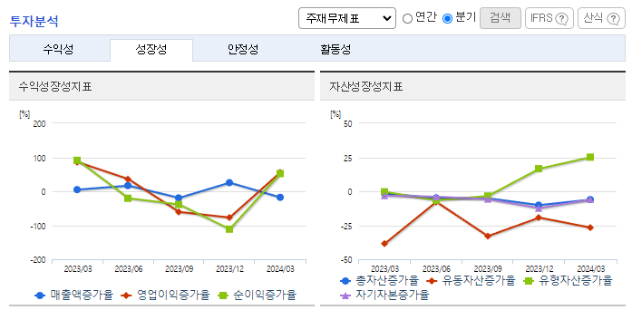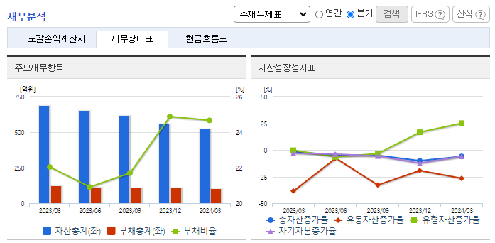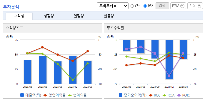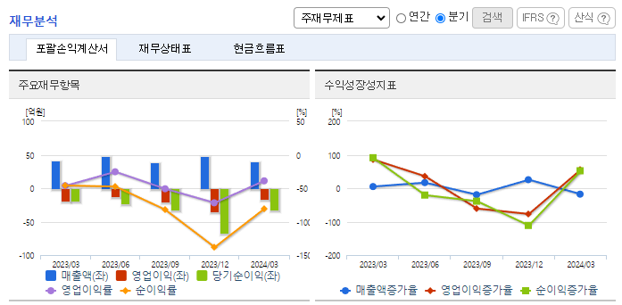 -2023년 12월 전년동기 대비 연결기준 매출액은 17.3% 감소, 영업손실은 47.1% 감소, 당기순손실은 28.1% 감소. 동사의 주력 사업인 안테나 사업부문은 해외 매출 저조 및 원재료 값 상승의 여파로 실적이 감소함. 매출액 감소의 사유로 중국경기의 불황으로 중국관광객 입국 저조에 따른 실적회복 지연 및 면세업계의 불황으로 인한 당사의 영업영역 축소가 매출 및 영업이익에 영향을 주었음.