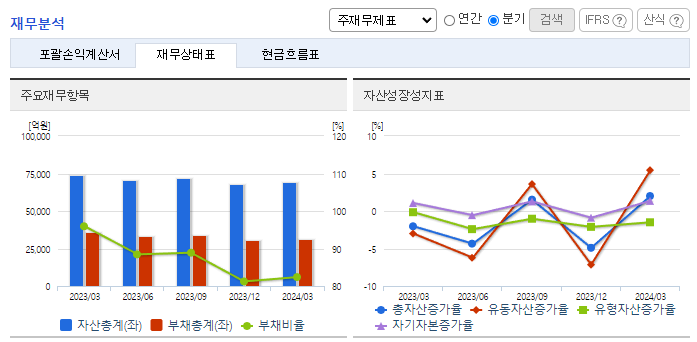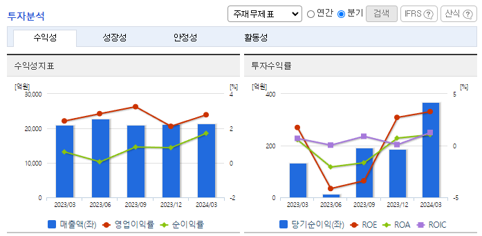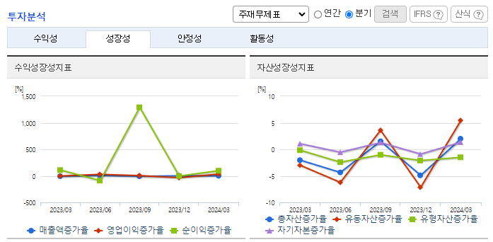 -2024년 3월 전년동기 대비 연결기준 매출액은 2.2% 증가, 영업이익은 17.3% 증가, 당기순이익은 128.9% 증가. 모빌리티솔루션 및 특수기계 매출 확대로 소폭이나마 외형 증가세를 시현하였으며, 원가율 하락으로 수익성 또한 개선된 모습. 기계부문 또한 회복세를 나타내고 있으며, 주력인 자동차부품사업부문은 지속적으로 동사의 성장을 견인할 것으로 기대함.