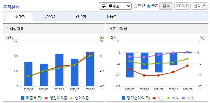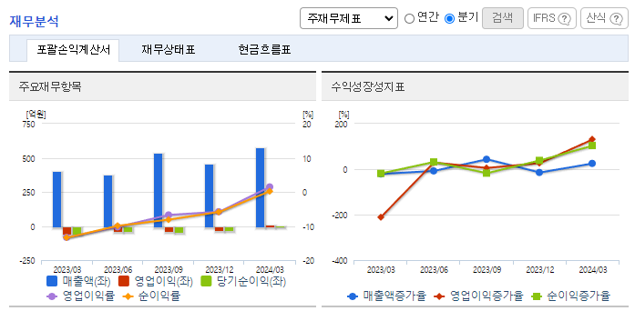 -2024년 3월 전년동기 대비 연결기준 매출액은 41.5% 증가, 영업이익 흑자전환, 당기순이익 흑자전환. 재고자산이 509,490(천 원) 감소 및 지급수수료가 감소함에 따라 판매비와 관리비가 전년 동기 대비 28.7% 감소하였음. 동사의 사업은 크게 광학 Film 사업부문/Mobile OLED用 Tape 사업부문 2가지로 구분되며, 사업부문별 매출비중은 광학 Film 사업부문 87%, Tape 사업부문 13% 임.