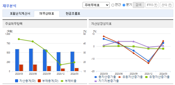-2024년 3월 전년동기 대비 연결기준 매출액은 2.9% 증가, 영업이익 적자전환, 당기순이익은 53.8% 감소. 매출액은 전년동기 대비 소폭 증가했으나, 사료 부문 원재료 확보의 어려움이 지속되며 매출원가가 상승하고 영업손실을 기록함. 2024년 1분기 기준 매출 비중은 사료 부문 69%, 식품 부문 31%로 구성됨. 최근 연구개발 테마를 Nutrition에서 Function(고령화 실버케어 및 삶의 질 개선)으로 확대함.