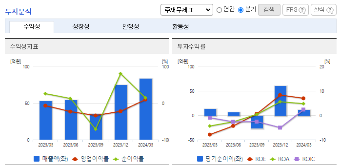 -2024년 3월 전년동기 대비 별도기준 매출액은 57.9% 증가, 영업이익 흑자전환, 당기순이익은 13% 감소. 화웨이총판 사업부의 매출이 발생하지 않았으나, SIP 사업에서의 매출 성장으로 매출액이 큰 폭으로 증가하였고, 판매비 관리비 감소에 따라 이익률도 상승함. 반도체 후공정 제조 기술을 넘어서 마케팅 및 시스템응용을 하는 토탈 솔루션 사업을 목표로 하고 있음.